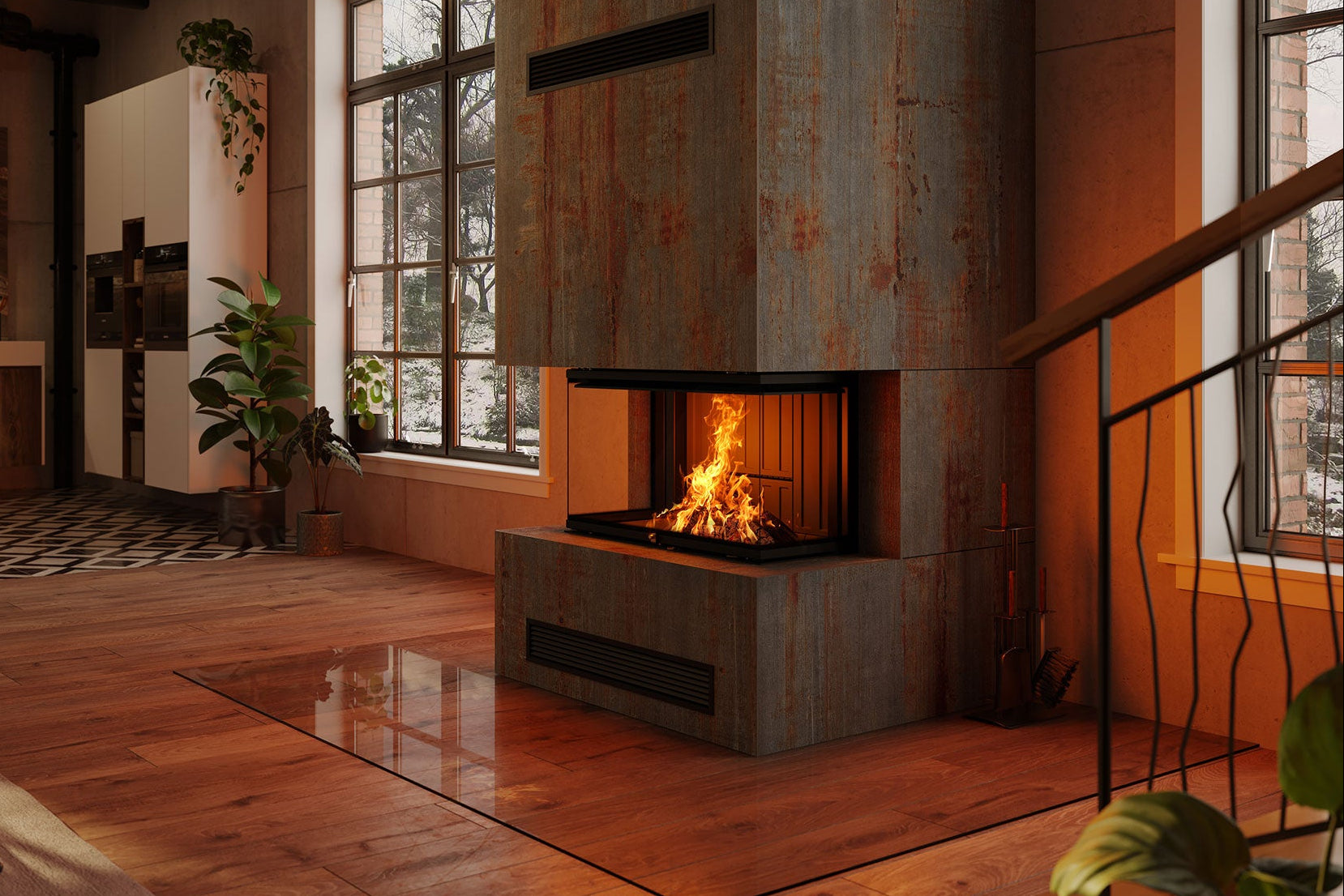 The LUXUS® 32 Bay is a German-engineered, 3-sided bay wood fireplace that delivers a huge flame view and a premium finish. Its smooth guillotine glass door lifts effortlessly and disappears behind your facing, while chamotte refractory panels absorb heat and radiate warmth back into the room.