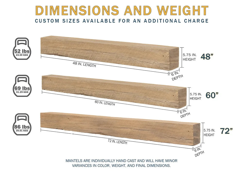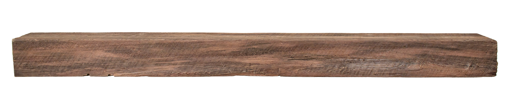 Our Grist Mill Rustic Mantel is molded directly from a 6” x 5.75” beam salvaged from an old Kentucky barn, faithfully reproducing every nuance and detail of this beautiful wood. Features include, deep weathered woodgrain, character knots, insect damage, saw marks, checks & splits, and tool marks.