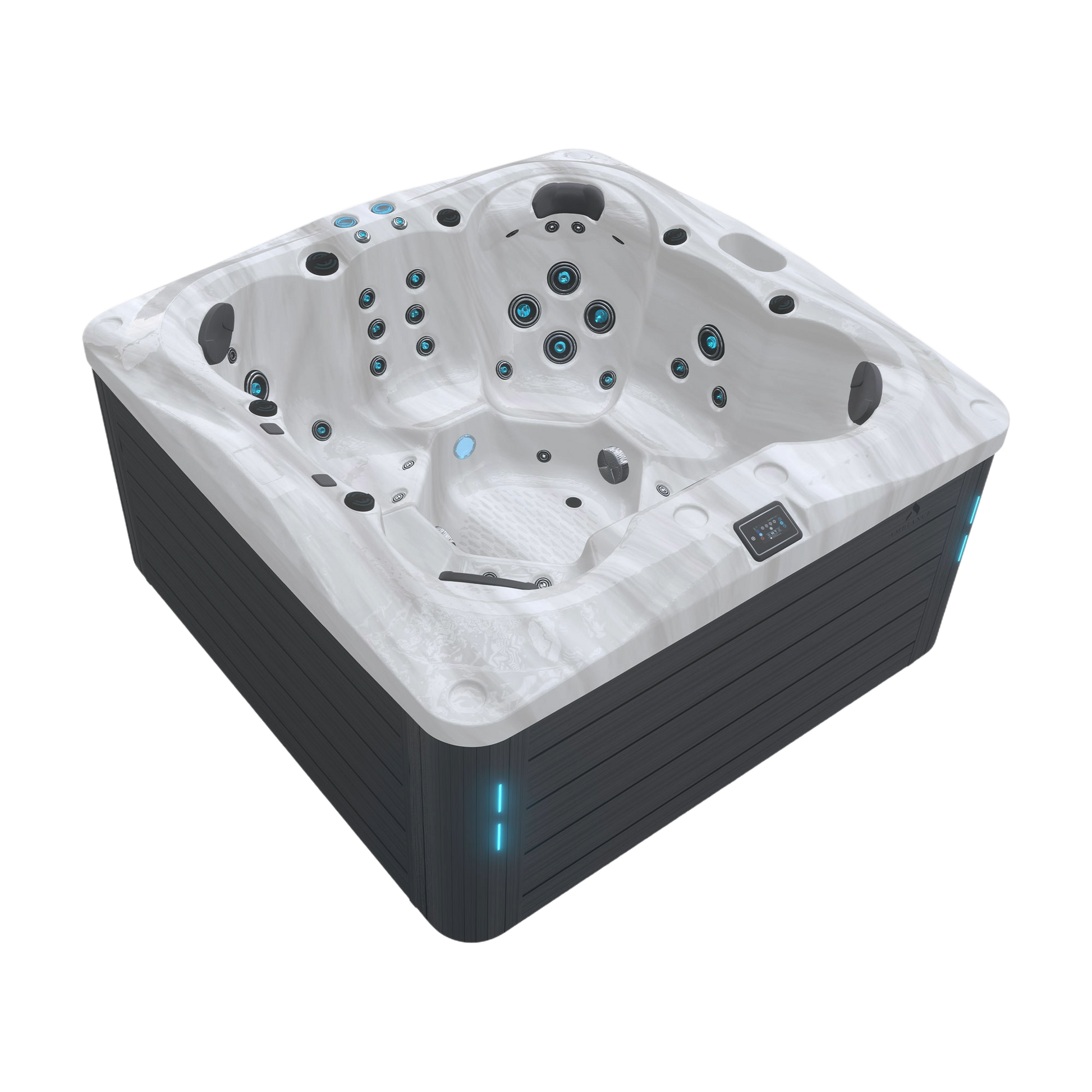 This energy-efficient hot tub comes loaded with standout features: an illuminated control panel, two backlit waterfalls, a built-in wine bucket, and dual cup holders for those long, relaxing soaks. It’s not just for weekends — it’s your everyday wellness solution, right at home.