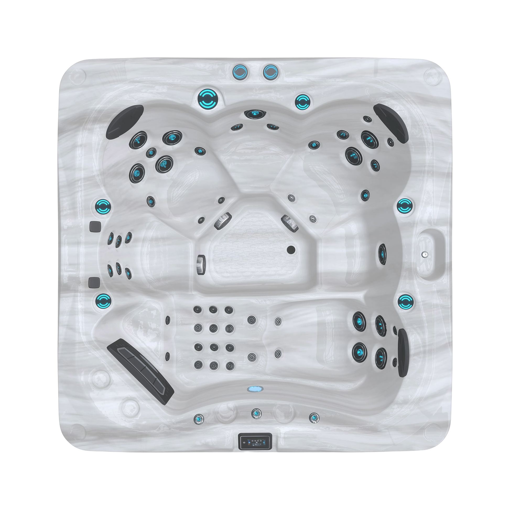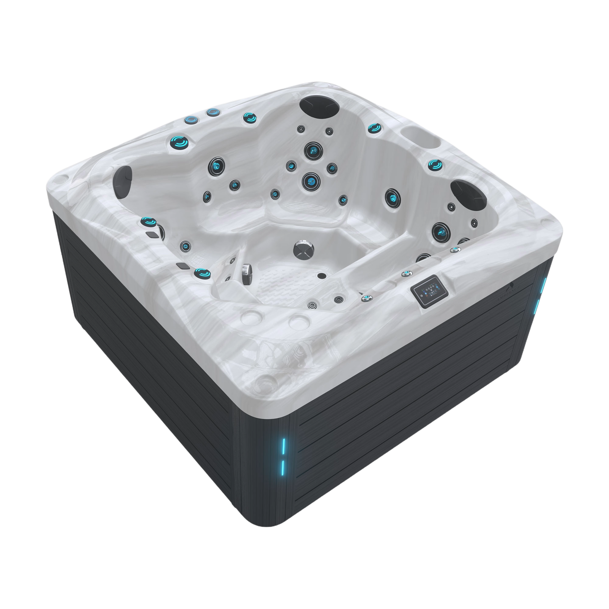 An insulated cover comes standard, built tough for extreme winter conditions. Optional upgrades include Bluetooth and Wi-Fi controls, color-changing lighted jets, and a selection of stylish acrylic shells and cabinet finishes to suit your outdoor vibe.