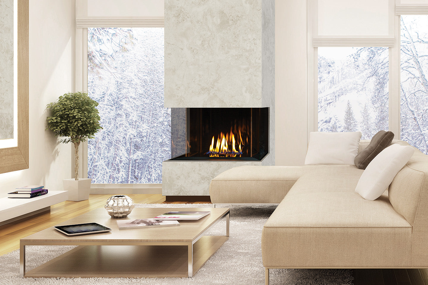 The Urbana U30 Gas Fireplace is a sleek, modern 3-sided bay-style fireplace built to deliver maximum flame visibility in a compact footprint. It features double glass safety (so no bulky screen in the way), a glass-to-glass design with no corner pillars, and clean top-to-bottom viewing for a premium, seamless look. With plenty of finish options like different liners, media kits, and bezel styles, the U30 is made to fit modern builds and custom installs beautifully.