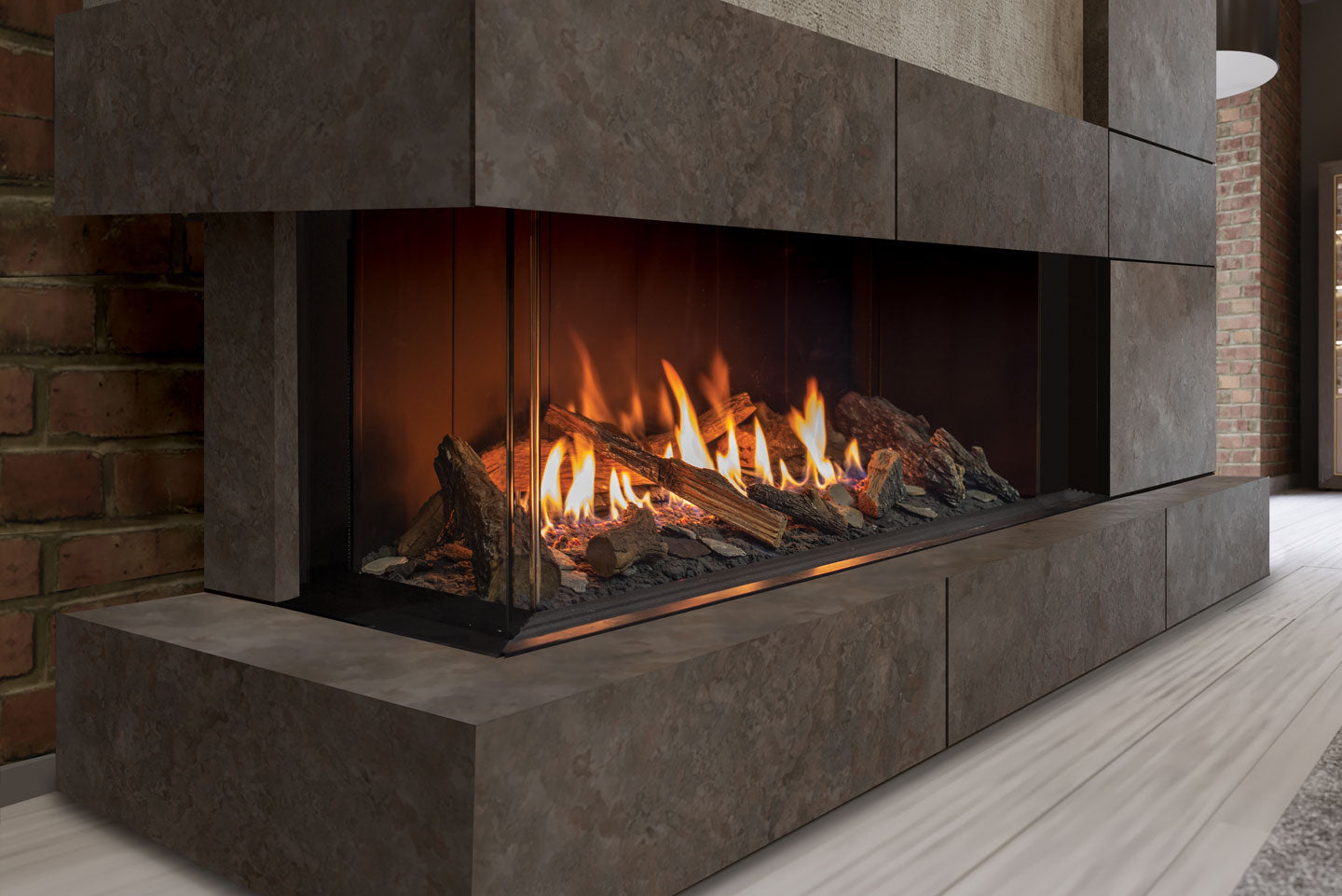 The Urbana U50 Gas Fireplace is a bold, modern 3-sided bay-style unit designed to create a true centerpiece with wide, panoramic flame viewing from multiple angles. It features a clean glass-to-glass design with no corner pillars and double glass safety, giving you a sleek look without the bulky screen. With multiple liner, media, and trim options available, the U50 is a premium choice for open-concept spaces, feature walls, and high-end custom installs.